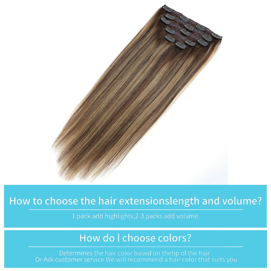 Enhance your hair instantly with our 100% Remy Human Hair Clip-In Extensions! Made from premium Brazilian human hair, these extensions blend seamlessly with your natural locks for a fuller, longer, and voluminous look.