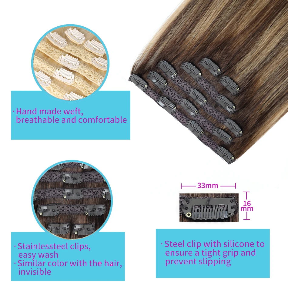 70-120 Grams Clip in Hair Extensions Real Natural Hair Remy Straight Set 7 Pcs Brazilian Clip in Human Hair Extensions